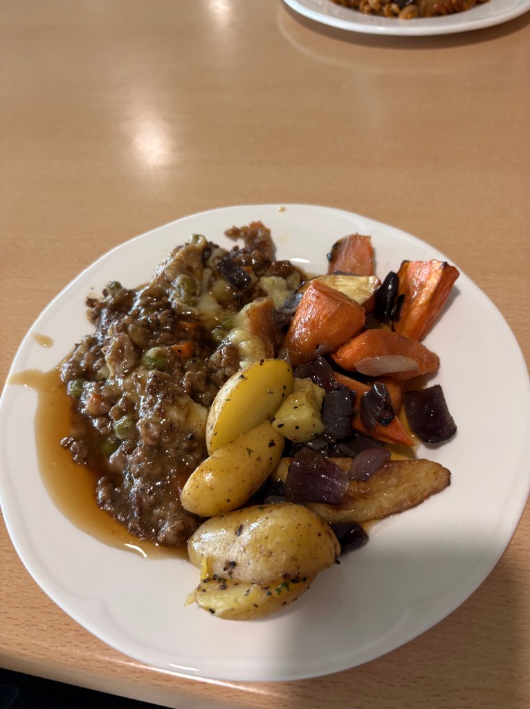 Lunch was shepherd’s pie — simple, warm, exactly what fits a long day of cricket.