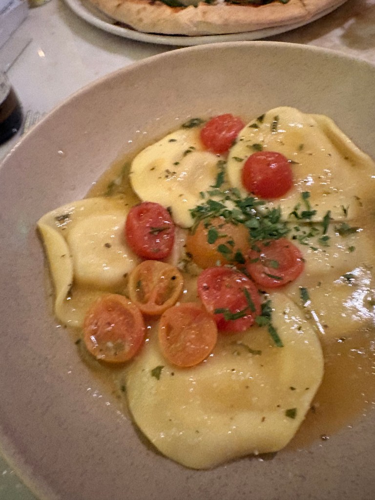 Dinner was smoked salmon and avocado to start, followed by lobster ravioli.